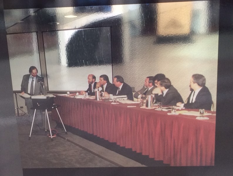 SC Perennial Steve Wallach (yes, that’s Steve wearing a coat and tie!) presenting in 1990. Also note the state-of-the-art projection system.